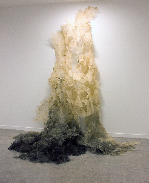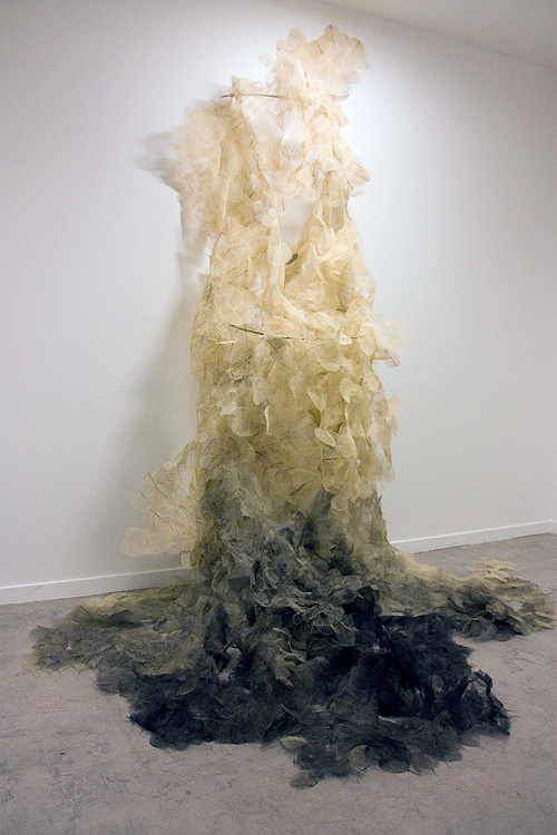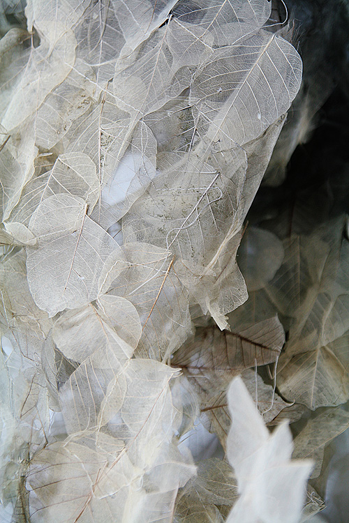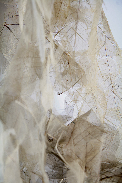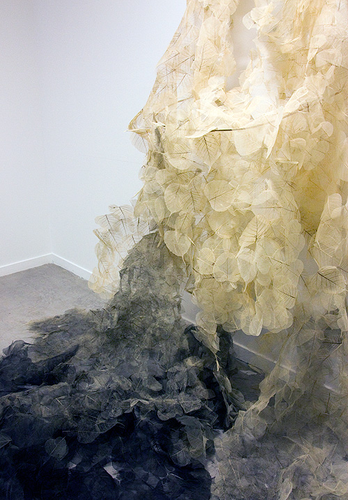FogThe Blanket Shaking out the laid stain The sewn leaves are fragile, excessive, impermanent, and overwhelming Exhausting and Beautiful 2012 dehydrated leaves, dimensions varied